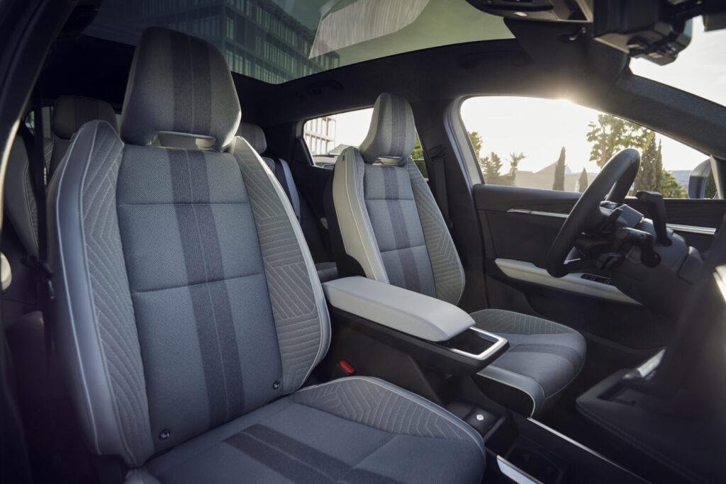 El puesto de conducción es uno de los mejores en su categoría. El volante tiene el tamaño perfecto y una textura que invita a conducir relajado. Los asientos, con diseño ergonómico y tapicería mixta de tejido reciclado y cuero ecológico, sujetan bien y resultan cómodos incluso tras horas al volante. En la parte trasera, el espacio para las piernas es generoso y el suelo completamente plano facilita viajar con tres ocupantes. El maletero, con 545 litros, tiene formas regulares y un doble fondo muy útil para guardar los cables de carga.