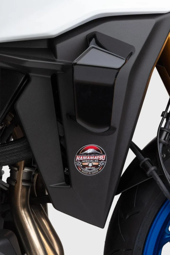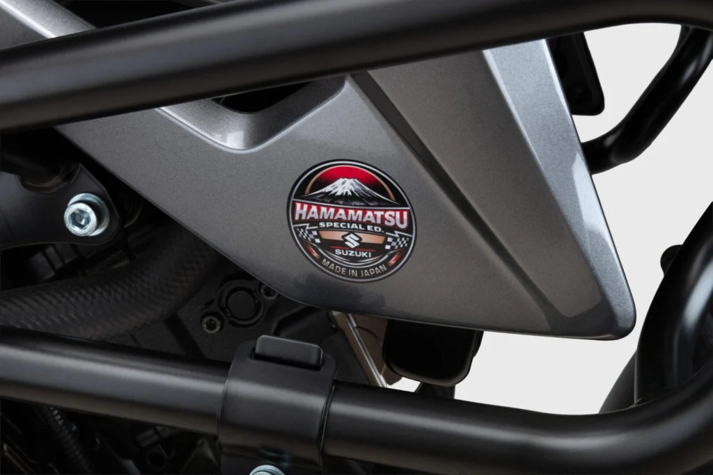 Uno de los puntos más llamativos de esta nueva estrategia está en el valor del equipamiento añadido. No se trata de simples adhesivos o pequeños detalles cosméticos. Suzuki ha optado por incorporar accesorios originales específicos en cada modelo, con una selección que busca reforzar la personalidad de cada moto y, al mismo tiempo, mejorar su uso diario o turístico. Además, todas estas versiones reciben distintivos Hamamatsu Special Edition en forma de emblemas, vinilos y detalles gráficos propios, lo que les permite diferenciarse visualmente del resto de la gama.