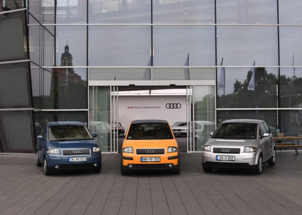 El estreno mundial del Audi A2 en serie tuvo lugar en 1999. Fue el primer compacto con carrocería íntegra de aluminio en la historia reciente de la industria. Ese mismo año se inauguraron nuevas instalaciones en Neckarsulm para su producción. En paralelo, se presentó el A2 1.2 TDI, que alcanzaba un consumo récord de 3 l/100 km.