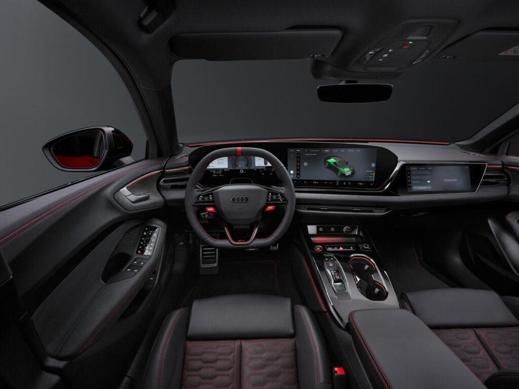 El chasis también se adapta a este planteamiento. Audi anuncia una carrocería un 10% más rígida que la base, suspensión deportiva RS y amortiguadores de doble válvula, con control independiente en compresión y extensión para combinar confort y control de balanceo. La arquitectura de cinco brazos se mantiene en ambos ejes, con ajustes específicos y un eje trasero desarrollado para trabajar con el nuevo reparto de par. En cifras, el peso en vacío declarado es de 2.355 kg (2.370 kg en el Avant), un dato que condiciona claramente el trabajo de frenos, neumáticos y calibración electrónica.