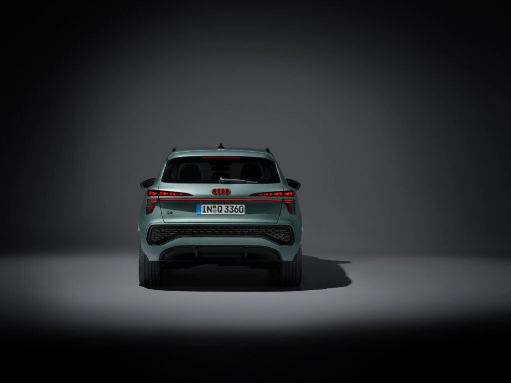 El Q3 2025 presenta un aspecto más musculoso y dinámico. La parrilla Singleframe crece en presencia y se combina con faros más estrechos. La línea lateral enfatiza hombros marcados que recuerdan al quattro original, mientras que la zaga incorpora una franja luminosa continua y pilotos traseros OLED opcionales.