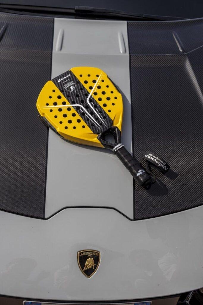 Ese planteamiento se aprecia especialmente en los proyectos ligados al rendimiento. Uno de los casos más llamativos es el de las palas de pádel desarrolladas junto a Babolat. No se trata solo de añadir un logotipo en un producto deportivo, sino de trasladar soluciones materiales y una filosofía de construcción cercana a la de sus coches. La marca habla de uso de fibra de carbono, espumas técnicas y una obsesión común por reducir peso sin comprometer rigidez. Dentro de esa colaboración, una de las palas ha sido fabricada incluso en el área especializada en carbono de Sant’Agata Bolognese, un detalle con el que Lamborghini refuerza la conexión real entre ambas industrias.