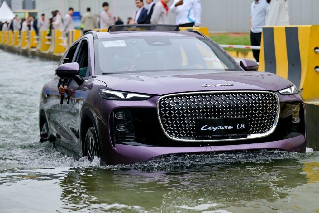 El desarrollo de Elegant Technology no se limita al comportamiento del vehículo en laboratorio. La marca asegura que ha analizado datos de accidentes reales en diferentes países para ajustar las soluciones estructurales y tecnológicas. Uno de los ejemplos mencionados es el refuerzo de los bajos, pensado para reducir los daños en impactos a velocidades intermedias, habituales en entornos urbanos. De igual forma, el LEPAS L8 —el modelo más representativo de esta primera etapa de la marca— ha sido diseñado para poder vadear más de 600 mm de profundidad, una cifra llamativa dentro de su categoría y orientada a mercados donde las lluvias torrenciales y las inundaciones son frecuentes.
