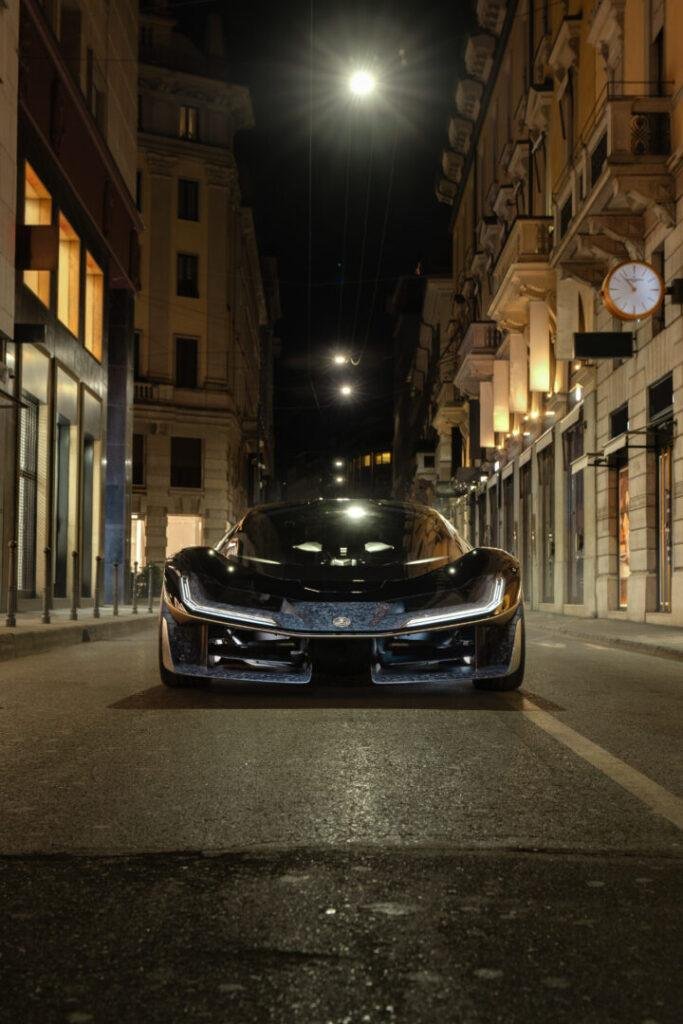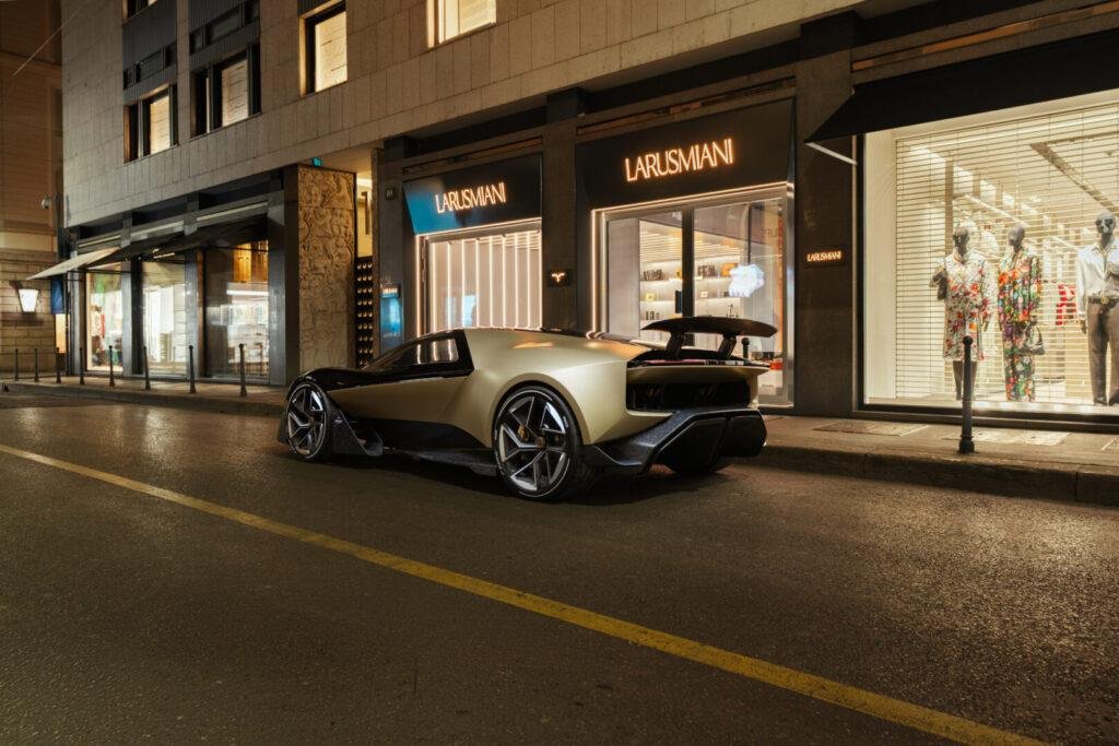 El Theory 1 entra por los ojos. Bajo, ancho y con proporciones muy agresivas, recupera la idea clásica del deportivo de motor central, pero reinterpretada con líneas más limpias y menos artificio. Nada sobra. Cada elemento tiene una función. Voladizos cortos, postura pegada al suelo y una sensación clara de coche pensado para ir rápido.