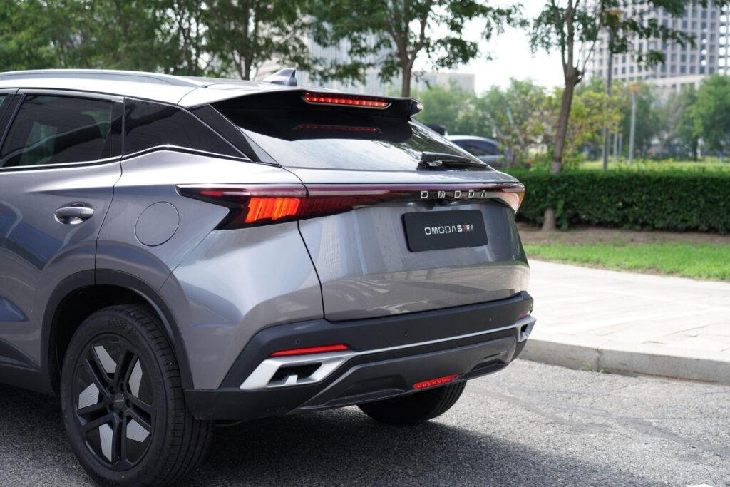 En términos de diseño, el OMODA 5 SHS-H mantiene el lenguaje de líneas tensas y superficies limpias que ya caracterizaba al modelo térmico y al eléctrico E5. Mide 4,44 metros de largo y 2,61 metros de batalla, unas cotas que lo colocan en el corazón del segmento por tamaño y habitabilidad. La parrilla paramétrica sin marco y las ópticas diurnas tipo “Sharp Blade” aportan una imagen tecnológica, mientras que las llantas —de 17 o 18 pulgadas según versión— refuerzan una estética deportiva. La zaga se reconoce por la firma lumínica horizontal y un portón de corte limpio que facilita el acceso al maletero.