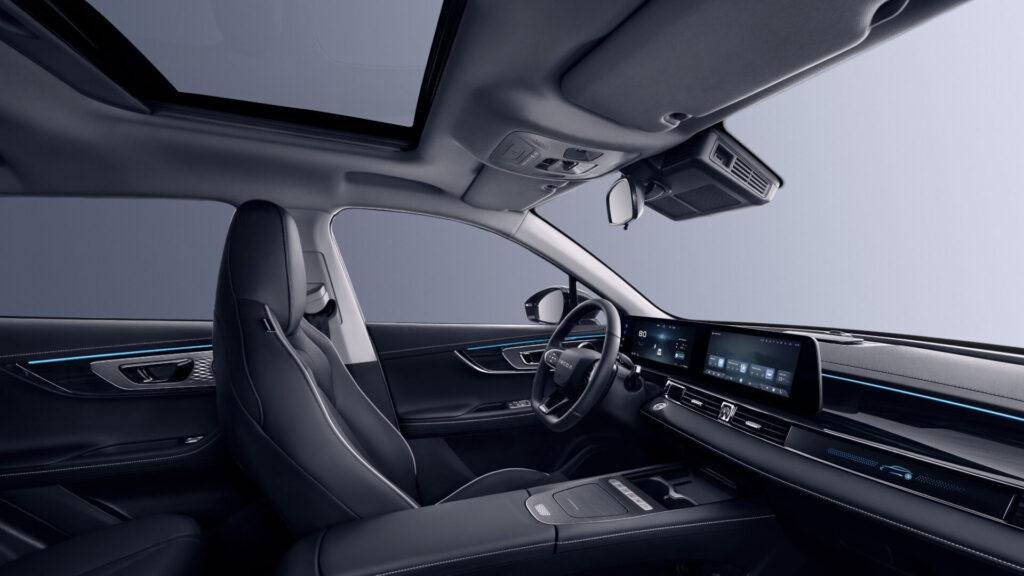 El interior apuesta por un entorno digital y ergonómico. Dos pantallas de 12,3 pulgadas, ligeramente curvadas, concentran la información de conducción y el sistema multimedia. El volante multifunción y el túnel central flotante reúnen los mandos principales, con atajos físicos para climatización y volumen, algo valorado en uso diario. La conectividad incluye integración con smartphone y servicios online, con actualizaciones OTA previstas para funciones de infoentretenimiento y asistentes. La calidad percibida se apoya en revestimientos suaves en las zonas de contacto y un ajuste visual cuidado, manteniendo un enfoque práctico en huecos portaobjetos y carga inalámbrica según acabados.