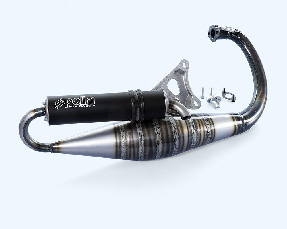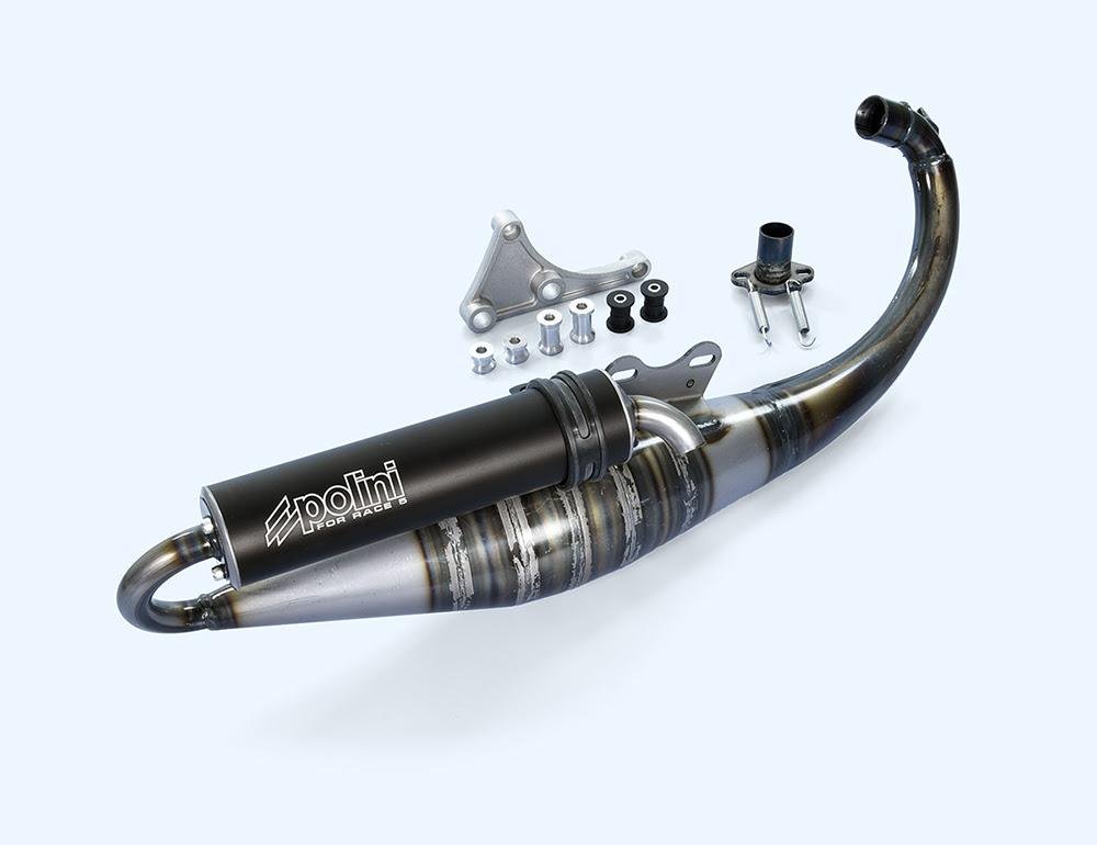 La modificación principal está en la curva de salida del colector. Polini la ha rediseñado por completo desde la salida del cilindro hasta el primer cono de la expansión, cambiando la forma y el recorrido para optimizar el flujo de gases. El objetivo declarado es claro: mejorar la respuesta al acelerador, reforzar el par en medios y conseguir una progresión más limpia en aceleración. En términos prácticos, este tipo de mejora suele traducirse en un motor que “engancha” antes, con transiciones más consistentes entre aperturas parciales y gas a fondo, especialmente útil en uso racing, pero también en una conducción deportiva en tramos urbanos o interurbanos.