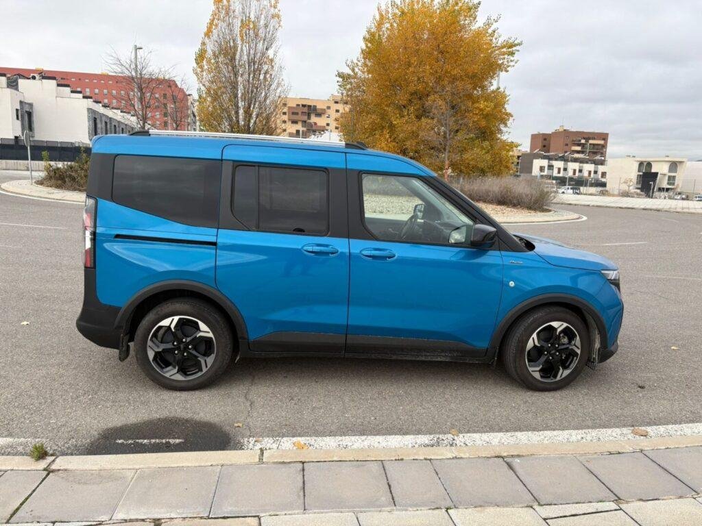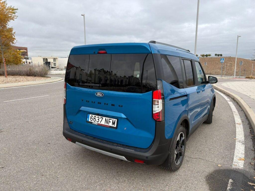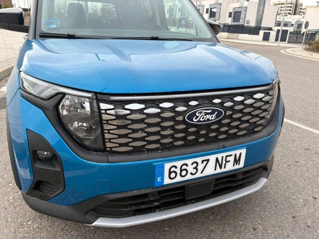 A nivel estético, el exterior del e-Tourneo Courier apuesta por una imagen funcional, sin artificios. El frontal incorpora la parrilla cerrada específica de la versión eléctrica, acompañada por unos grupos ópticos bien integrados que le dan un aspecto moderno y reconocible. El perfil es claramente cúbico, pensado para maximizar el espacio interior, con grandes superficies acristaladas que aportan luminosidad y mejoran la visibilidad. En la zaga, el portón vertical y de gran tamaño refuerza ese carácter práctico y facilita la carga en cualquier situación.