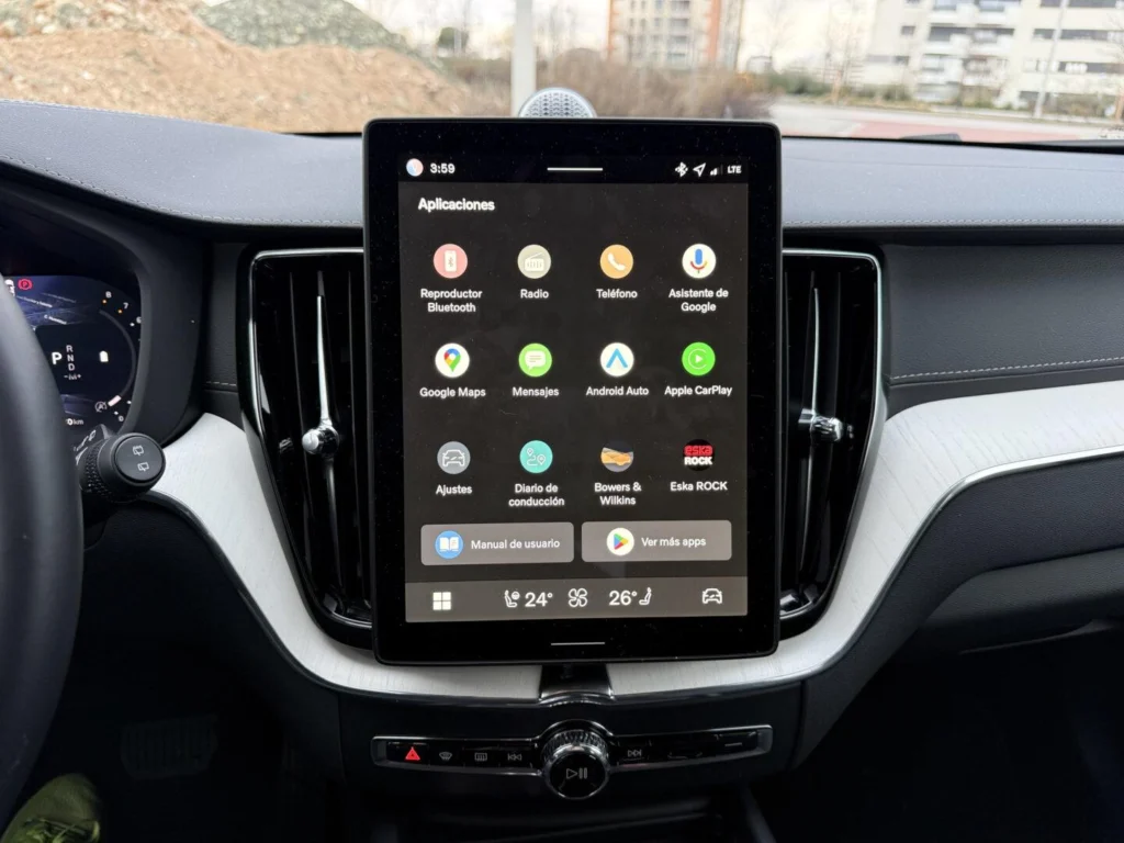 El sistema multimedia es uno de los elementos que más influyen en la experiencia diaria. La pantalla central vertical, basada en Android Automotive, integra los servicios de Google de forma nativa. La navegación es rápida y precisa, con información de tráfico en tiempo real bien integrada. La respuesta táctil es inmediata y el sistema se muestra estable incluso tras varios días de uso continuo. Apple CarPlay funciona de manera inalámbrica, mientras que la conectividad general resulta sólida, sin cortes ni fallos durante la prueba.