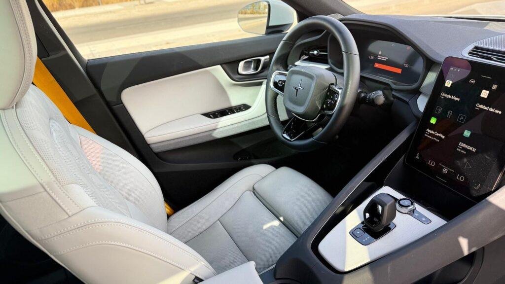 La historia de este modelo comienza en 2020, cuando Polestar, marca independiente surgida del entorno de Volvo y de su división de alto rendimiento, presentó su primer eléctrico puro. Desde entonces ha evolucionado en potencia, autonomía y tecnología. La versión probada, con tracción total y el paquete Performance, representa el punto más alto de esa evolución. Ofrece 350 kW, equivalentes a 476 CV, y 740 Nm de par, lo que permite pasar de 0 a 100 km/h en poco más de cuatro segundos. Pero más allá de las cifras, lo que impresiona es la forma en que responde: inmediata, precisa y lineal, con un empuje que te pega al asiento sin esfuerzo aparente.