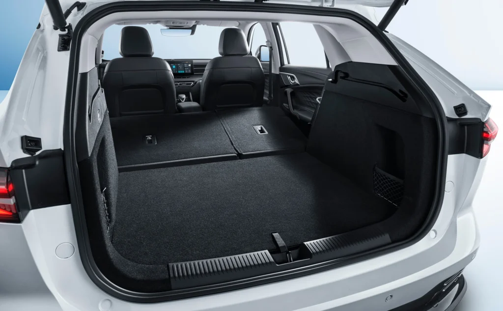 El maletero ofrece una capacidad de 441 litros, suficiente para el día a día o escapadas de fin de semana. La boca de carga está bien situada y no hay bordes molestos. El espacio puede ampliarse hasta 1.291 litros abatiendo los respaldos traseros, que se dividen en proporción 60:40. El suelo de carga queda casi plano, y bajo él se aloja el cable de carga tipo 2 incluido de serie.
