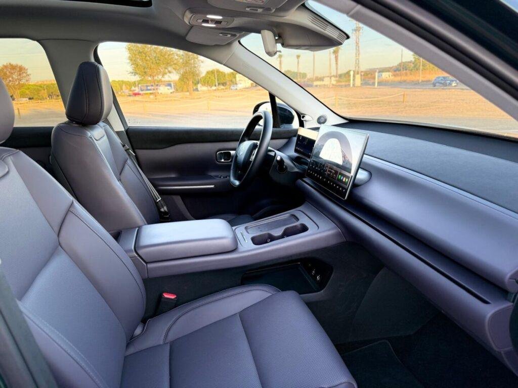 El interior sigue la filosofía minimalista del exterior. La presentación es limpia, con materiales agradables al tacto y ajustes sólidos. La gran pantalla central de 14,6 pulgadas concentra casi todas las funciones: climatización, conducción, energía o infoentretenimiento. El sistema funciona con rapidez y su interfaz es intuitiva, aunque el exceso de submenús puede requerir un periodo de adaptación. Frente al conductor, un cuadro digital más pequeño muestra la información esencial de forma clara.