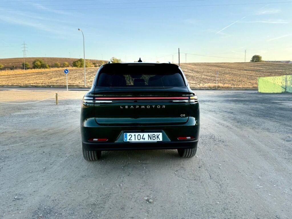 El Leapmotor C10 se posiciona en el corazón del segmento de los SUV familiares medios, con 4,73 metros de longitud, 1,90 de ancho y 1,68 de alto. Su diseño es limpio y equilibrado, con líneas suaves que recuerdan más a un crossover premium que a un SUV de acceso. No busca llamar la atención, sino transmitir solidez y calidad. El frontal con su firma luminosa en forma de ceja y la zaga con una franja LED continua reflejan el lenguaje visual de la marca. A primera vista parece más europeo que asiático, y lo cierto es que fue diseñado con esa intención desde el inicio.