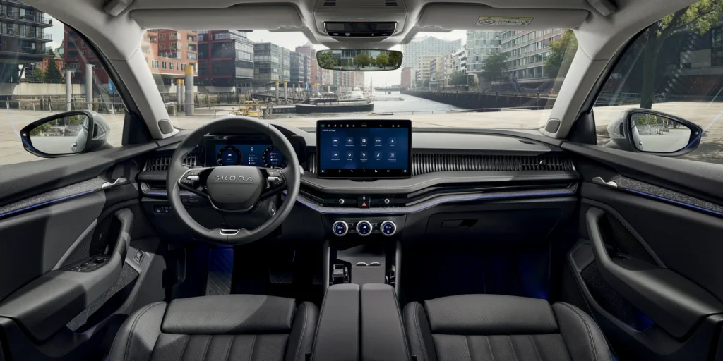 El uso real del Superb durante algo más de 1.000 kilómetros permitió comprobar cómo se comporta en el día a día madrileño y también en largos desplazamientos por autovía. A lo largo de esa convivencia, combiné tramos urbanos con períodos prolongados en M-40 y M-50, y un recorrido interurbano largo que exigía mantener velocidades constantes. Desde el primer contacto, el habitáculo transmite una sensación de producto sólido, muy pensado para el conductor que realiza muchos kilómetros al año. El ajuste de los asientos, la caída suave de la puerta al cerrarse y la ausencia de vibraciones al ralentí anticipan el enfoque del coche antes siquiera de salir a la carretera.